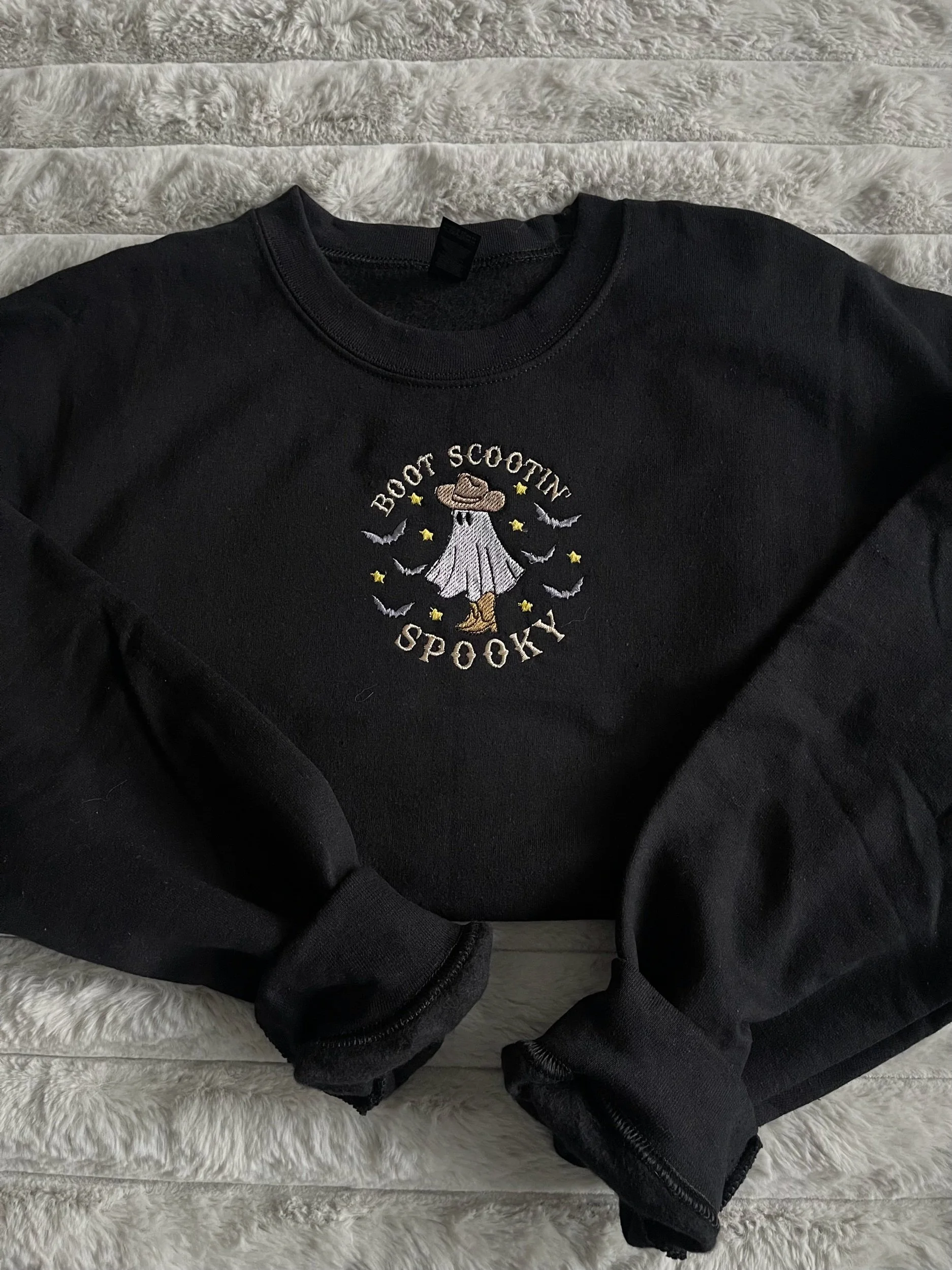 Image 1 of 1 Boot scootin’ spooky $40.00 Size: Select Size Small Medium Large XL XXL Color: Select Color Black White Grey Sand Baby pink Quantity: Add To Cart Added!